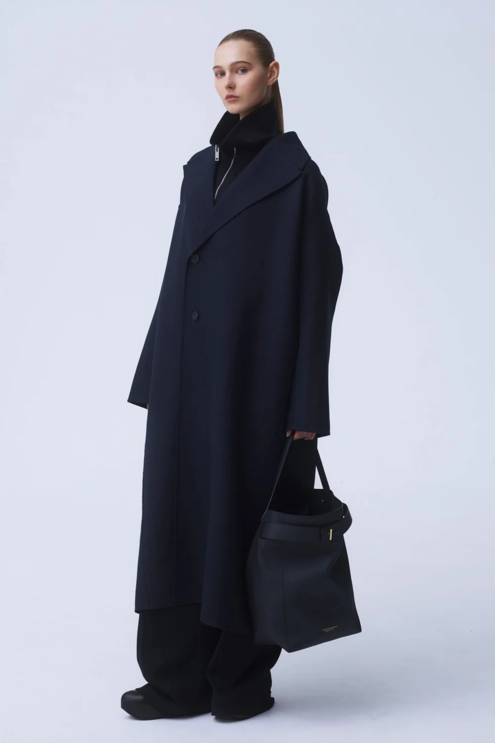 Murata himself, commanding the showroom floor with the gravitas of an architectural lecturer, described the collection as an embodiment of a cityscape. This evocative metaphor immediately illuminated the collection’s dominant aesthetic: a series of vertical silhouettes that masterfully balanced structure and fluidity. The inspiration manifested in coats with high collars that stood resolutely, reminiscent of soaring skyscrapers, yet these rigid forms gracefully transitioned into softer, draped volumes, cinched at the waist with expertly placed belts. This dynamic interplay between the architectural and the organic is a hallmark of Murata’s design philosophy.
