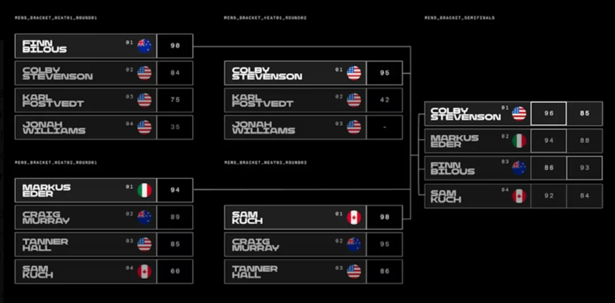 Finn Bilous of New Zealand completed the podium in third place, delivering one of the most consistently strong performances across the entire event. Despite a minor setback on a cork 10 in the finals, Bilous’s overall consistency and the quality of his second run, which was particularly strong, ensured his place on the podium. His performance exemplified a balanced approach, blending solid trick selection with reliable execution.