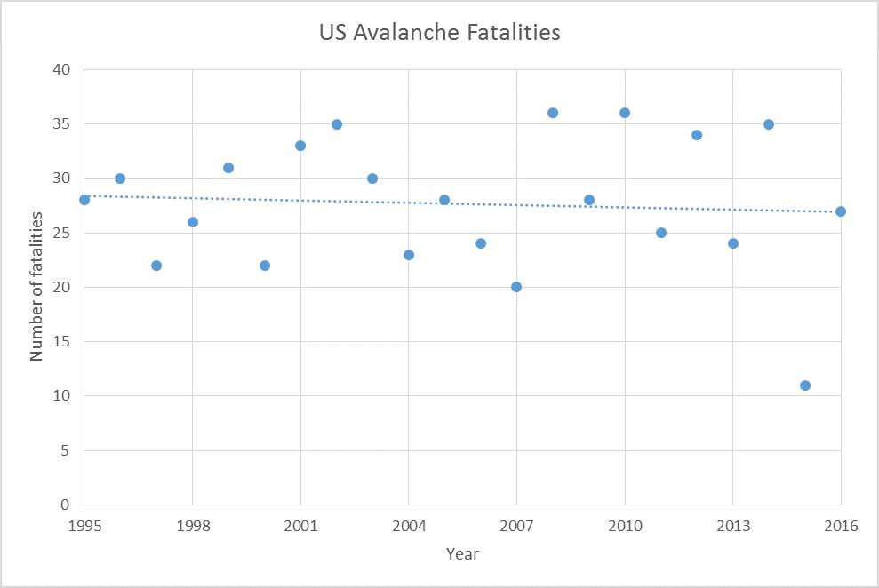 Data compiled by the Colorado Avalanche Information Center and analyzed by experts such as Karl Birkeland of the National Avalanche Center paints a remarkable picture of the period between 1994 and 2016. According to the long-term fatality records, the annual number of deaths caused by avalanches has shown no statistically significant increase. Using a least-squares trend line analysis, researchers found a p-value of 0.7 for overall fatalities, a figure that indicates no statistical evidence of a change in the frequency of deaths over twenty-two seasons.